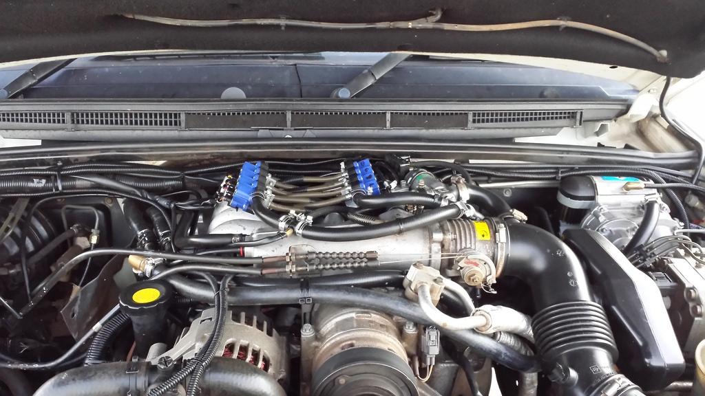 This is how I did my first Thor injection install. Without a body lift your bonnet clearance is limited.