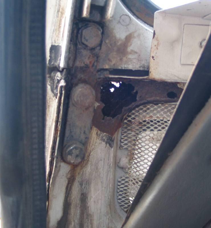 I took the Drivers door trim off 1st to try to fix a broken weld on the door frame to find Rust and a bit of it.... Not as bad as the Pass door, its ****ed.