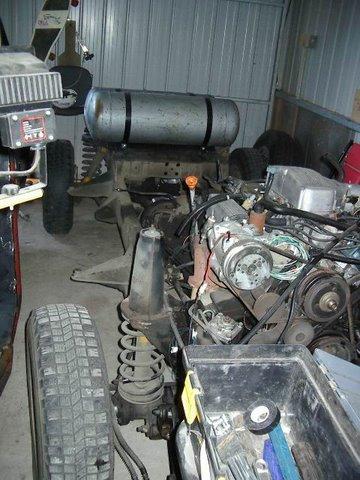 You would think that now the tray is built it would start lookinglike a real 4WD. But no, I cant have that. I decided that since I still have to pull out the motor to replace it with teh 4.6 I have at the motor rebuilder and since I want to pull out the auto and transfer case to replace seals and gaskets and make sure they are all ok, and then I have to change over the axles.......I decided to remove the body, which would make everything a lot easier.
