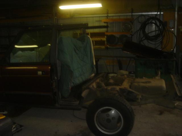 Lastly it is time to remove the rear section of the body. I had a lot of problems getting the brake line off the body and had trouble removing one of the rear body mounts, but after that it was easy with the 9" grinder.