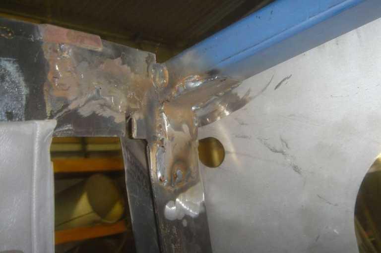 Gusseted up all the joins on the rear pillar and spent the morning trying to blow holes in the thin metal again.Nade lots of nice bird crap and then ground it all back nicely.