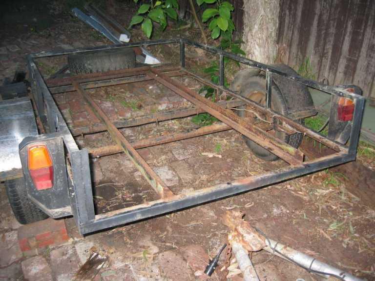 Well we are starting off with a 6x4 trailer i got of fleabay for the princely sum of $147, plan is to lift it and fit D1 steel rims on transit van hubs that my BIL gave me. Trailer will be for general carting duties and and a camper top is planned for later on. Trailer is very sound apart from the angle iron that was used to screw the plywood floor to (the angle will be cut out when the new floor goes in). It is constructed of 50mm angle and 25 & 38mm rhs tube , the 25mm side frame makes it quite strong and the main raile will be either boxed or i'll just run a 50mm tube up the guts to brace it. I'm tossing up whether to to use alloy CP for the sides attached outside the frame with plywood inside or just sheet it in steel on the inside. Side are 2500mm but will be extended to either 400 or 450mm.