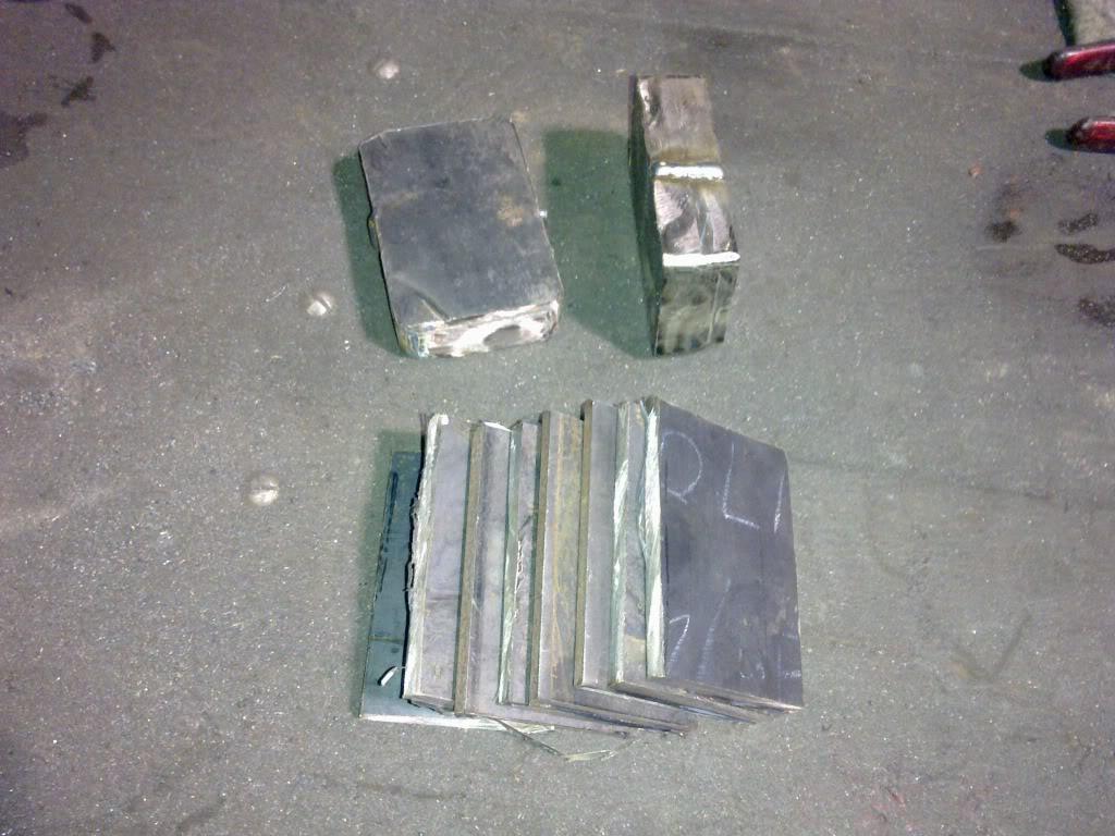 Also, I got started on the flanges of the braces... I have to make 16 of the damn things! Below is as far as I got. 2 sets of 4 stacked ready to be drilled and a whole lot more waiting for the same.