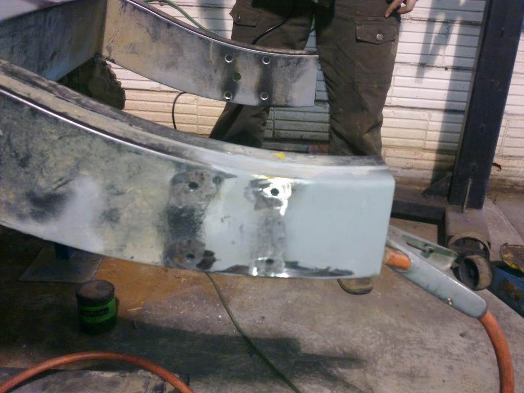 In each of the four locations the holes were drilled out to the size of the crush tubes, the crush tubes inserted and welded in, as you can see below (sorry for the rubbish photos, I forgot the camera again!):