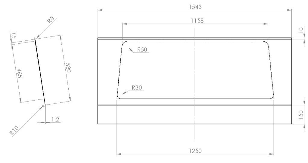 I was doing some tinkering in SolidWorks to work out what I'm going to do about the window. And I think I should be able to get away with a simple panel with a laser cut hole and a couple of folds: