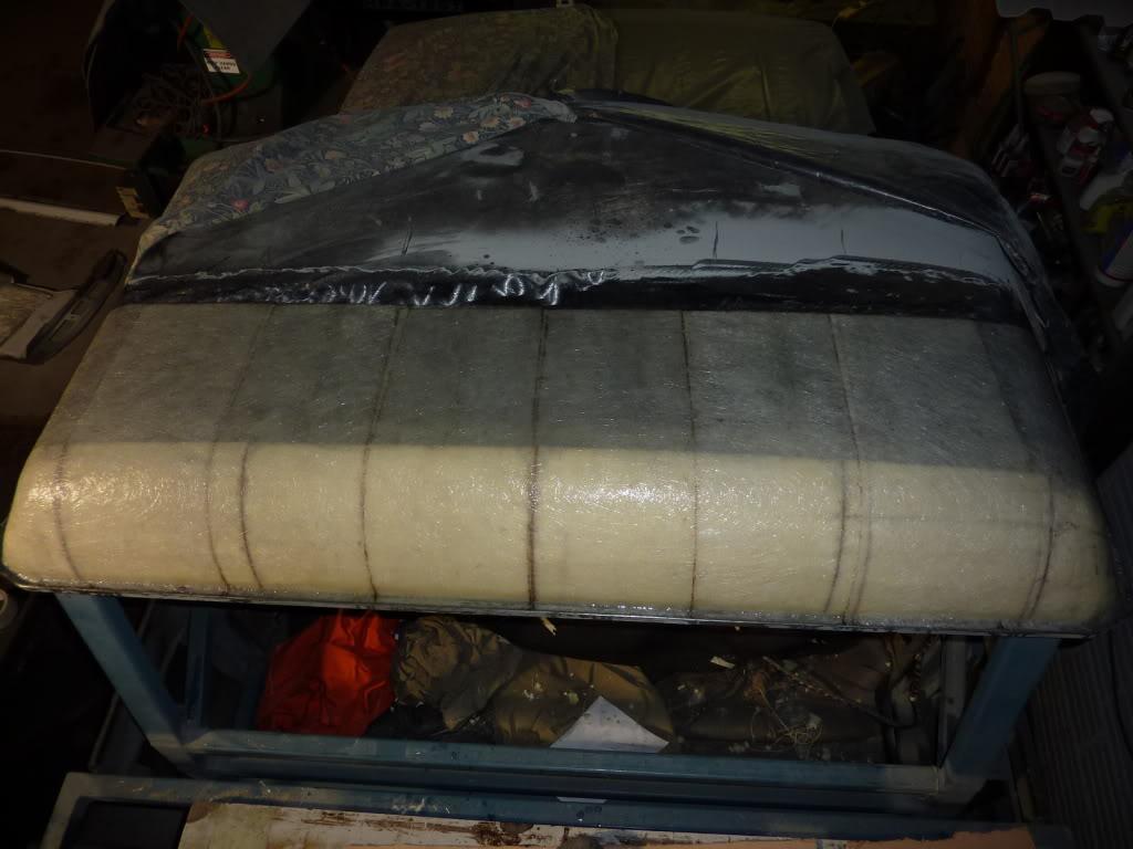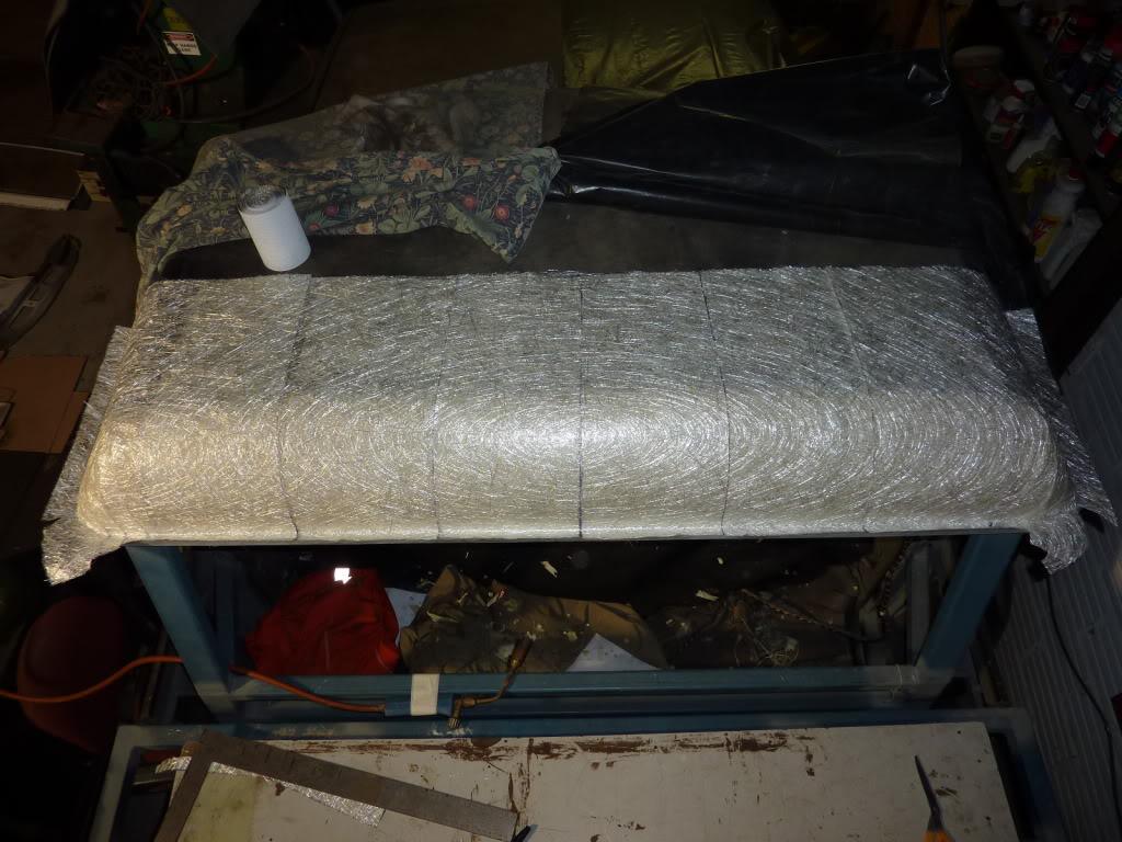 Below is what it looked like when I finished up with the chop strand and epoxy. It took some effort to prevent any bubbles from forming due to the compound curves! But I got there in the end:
