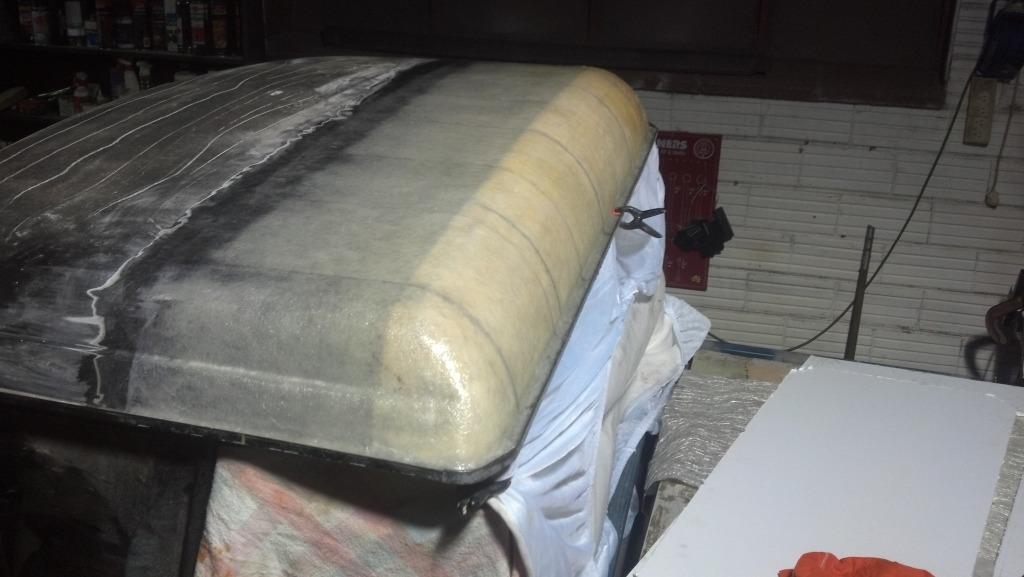 Sanding and the final coat of fibreglass is now on: