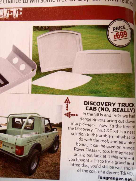 There was an article on those truck cabs in the December 08 issue of Landrover Monthly but instead of posting up photos. This is the website instead Custom Cab :)