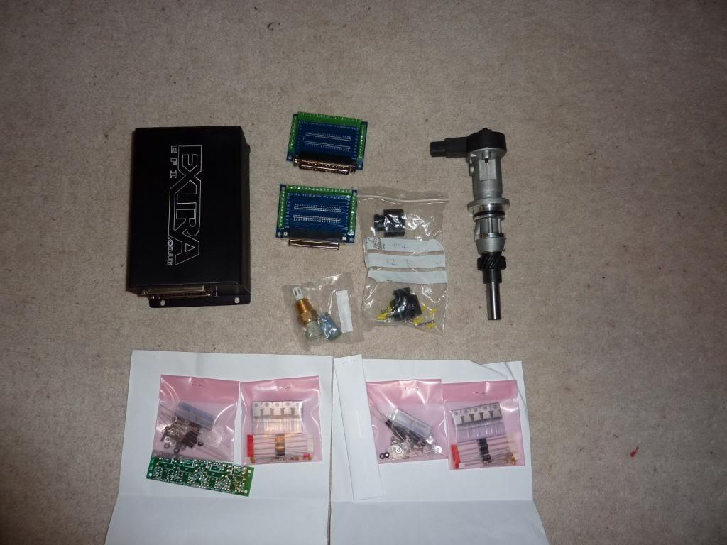 Also, some more go-fast bits arrived. The Megasquirt ECU is here, some breakout connectors during the testing phase, the Peak & Hold Board (which i'm a bit irritated is in pieces needing me to solder considering how much they cost!!) and a cam synchronizer from a Ford that I will machine and fit onto the bottom half of the Rover distributor assembly for the cam position signal.