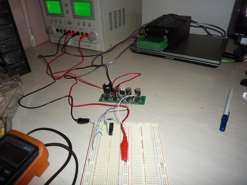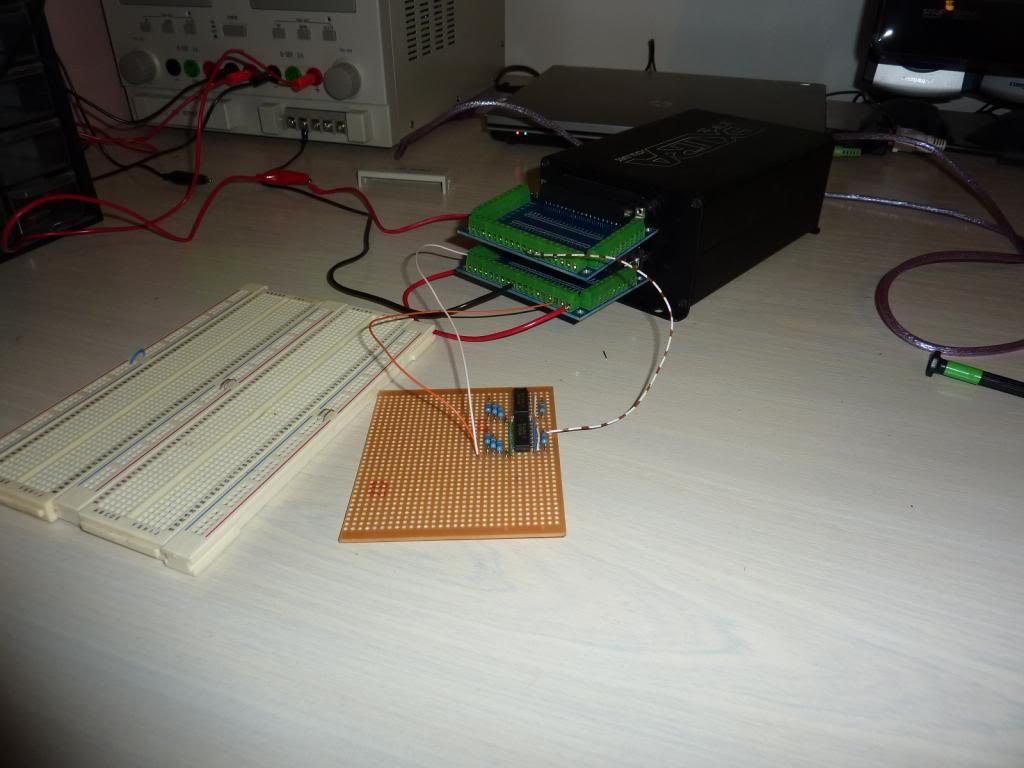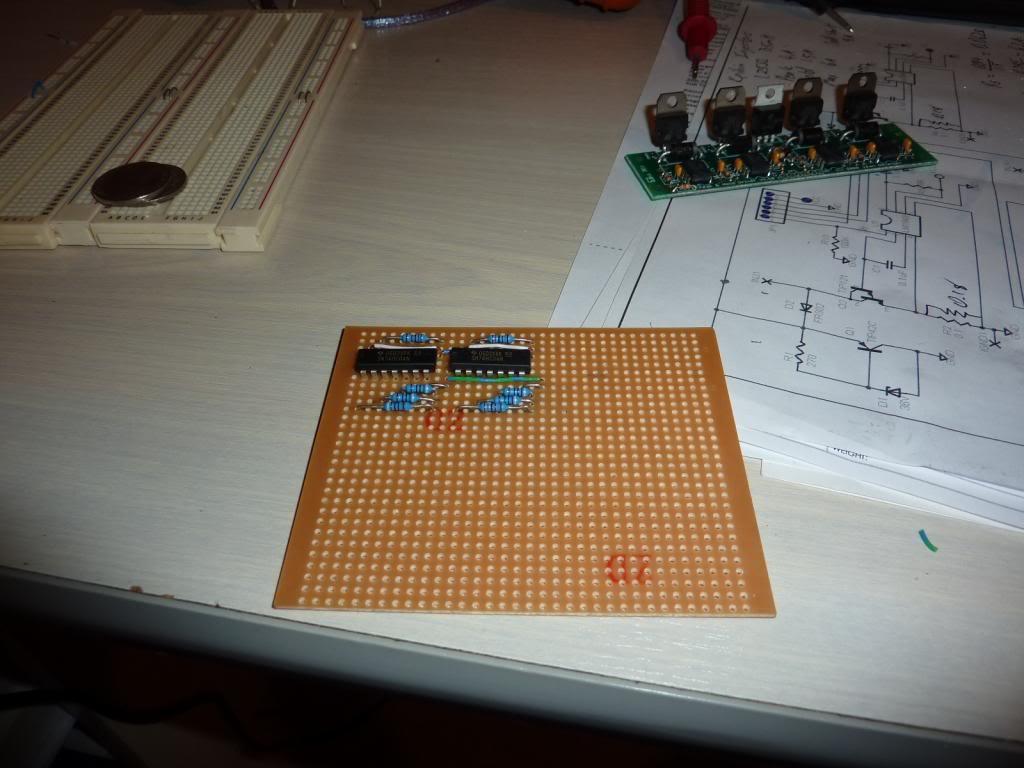 Trialing the inverting circuit. the MSX card in the ECU outputs an earthing signal for the injectors, but the peak & hold board needs a 0 to 5V signal. So a 74HC04 IC is used to invert the signal. It works