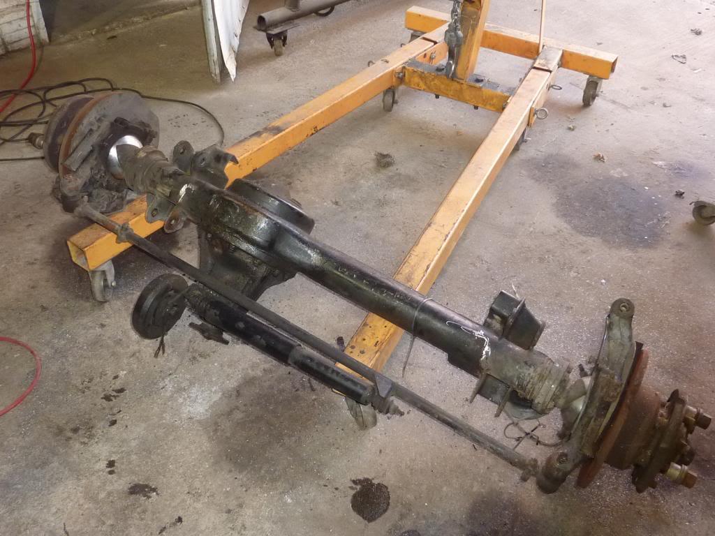 Started work on pulling off the axle from the wrecked discovery, I'm having to go to all this effort to cut off the sway bar brackets on the axles. I was hoping I could cut them off with the axle on the car, but that wasn't possible.