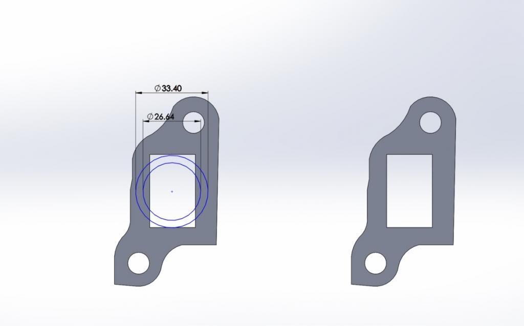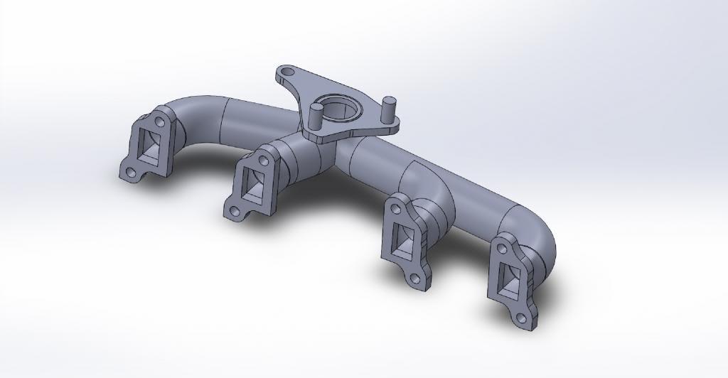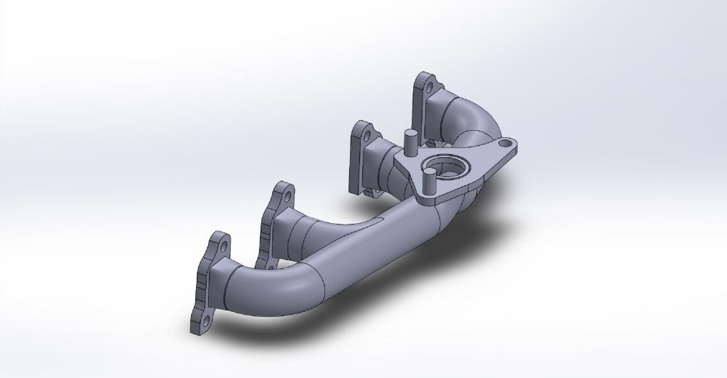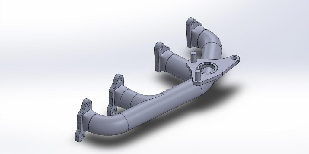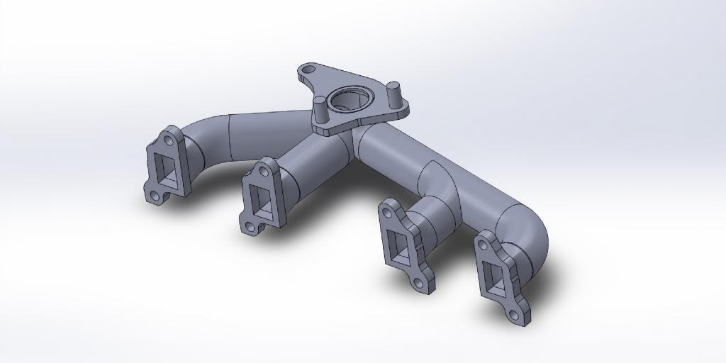 I've also started working on designing the exhaust manifold. I think I will need to use 1" schedule 40 pipe. 1 1/4" was simply way too big and would be very difficult to do a 4 to 1 transition. Below shows the 1" schedule 40 pipe against the exhaust flange and turbo flange: