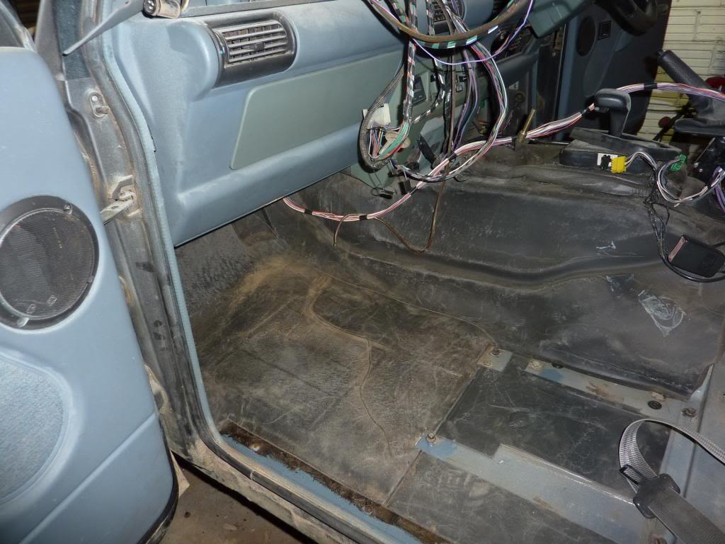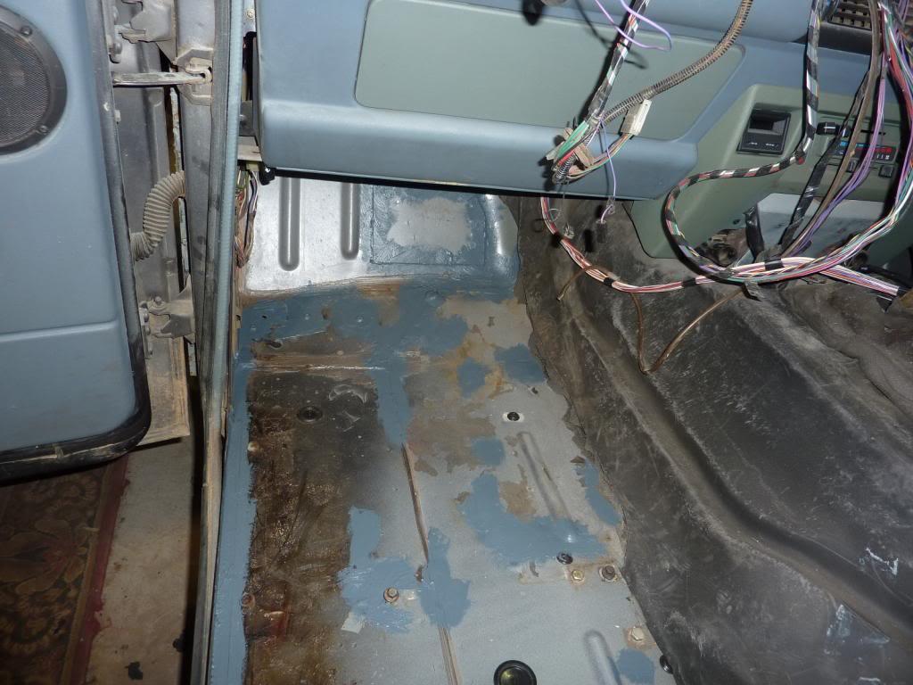 Some interior work was done. Seats & carpet were pulled out to deal with any rust. Considering the car is 20 years old it is in surprisingly good condition with only some minor rust present in the passenger foot well: