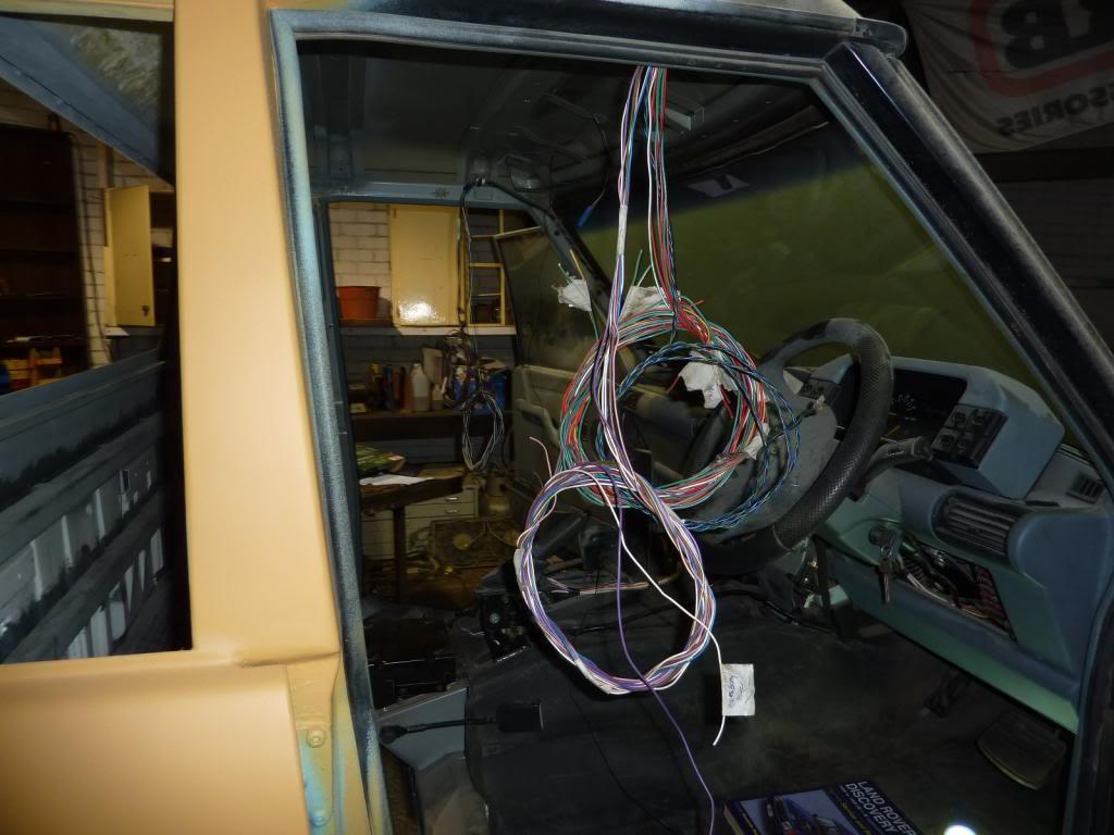 The loom that will run to the rear of the car was sorted and the cables identified. I also left all the un-needed cables that ran to the rear door in as spare wires. I may need them later!: