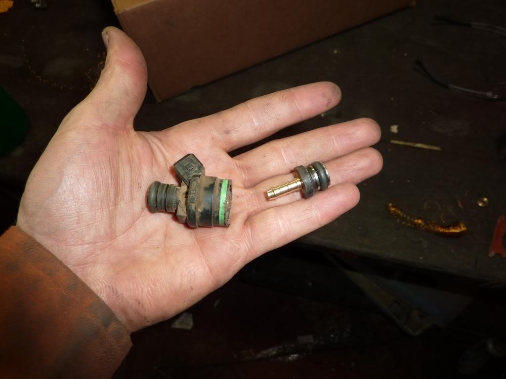 I made a start on the LPG nozzles. While I could have gone with drilling and tapping the inlet manifold injector ports and then drilling and tapping again to install the nozzles. I decided that I would just cut up the old injectors and thread lock the LPG nozzles into the nozzles of the injectors. While the holes were too big to tap a thread they were the exact size of the LPG nozzles so the thread locker should work perfectly here: