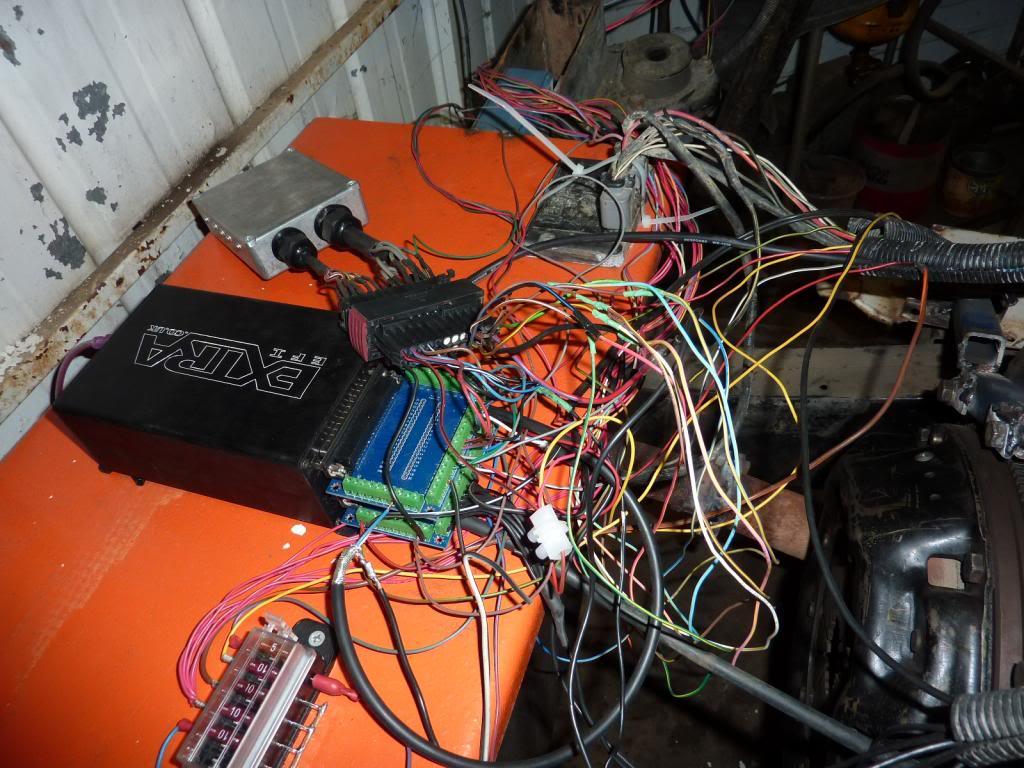 The injector module was wired onto the ECU and the injectors tested. All working perfectly (the number of wires is exploding!). I started the engine and the injectors were opening & closing sitting on the bench. Also all the LPG system sensors are wired up and giving readings: