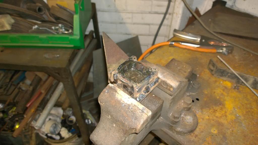 First up was making the collectors which would be welded to the manifold flanges. This is what I knocked up out of 10mm steel to cold work tube into the shape I needed. Unfortunately I didn't have access to Oxy & Acetylene so I had to rely on brute force: