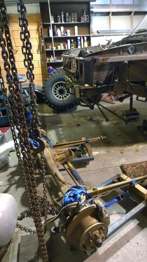During the process of swapping the axles, I discovered that the earlier range rovers had very different (i.e. much weaker) radius arms than the discovery originally had... I didn't have time to sort that out so I just bolted on the axle temporarily for now until I complete the move.