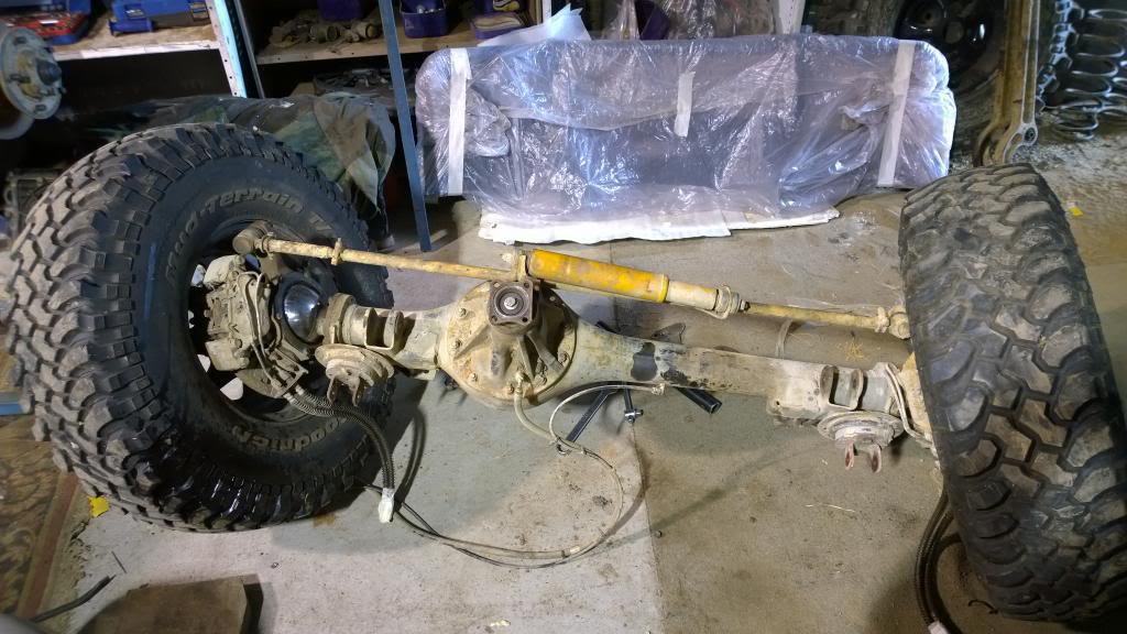 Removed the front axle out of the discover to swap it out with the locked & slotted swivel ball axle from the the range rover. Before installing the axle I needed to weld on the sway bar brackets I had cut off from the other axle earlier.