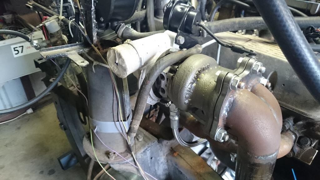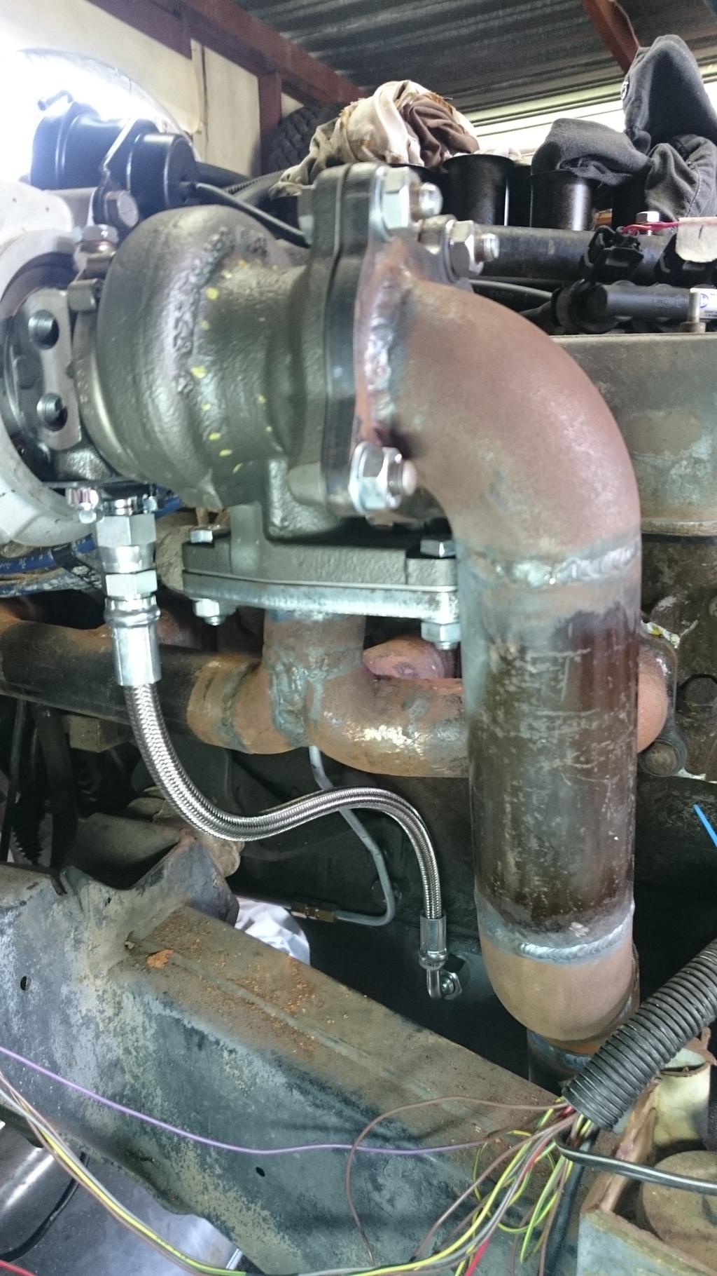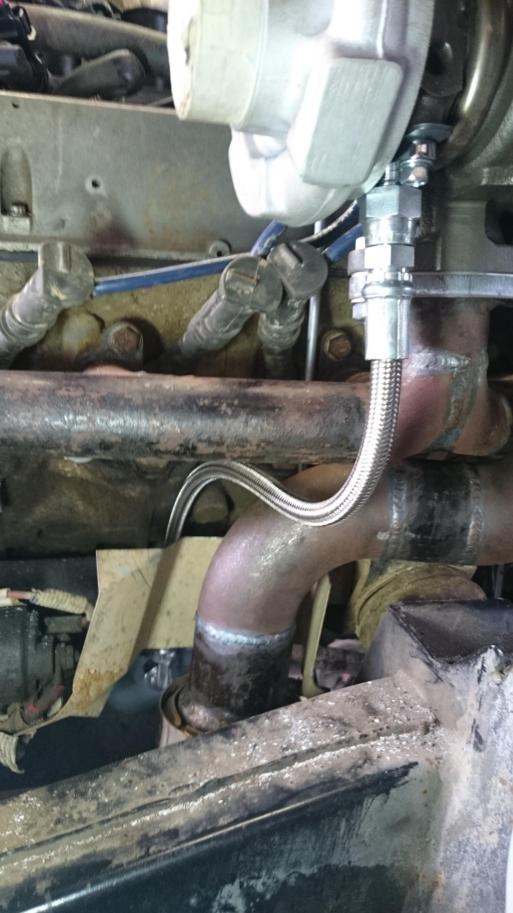 The turbos were bolted on with gaskets and the oil lines fitted. My measurements for the oil lines were pretty close to being spot on: