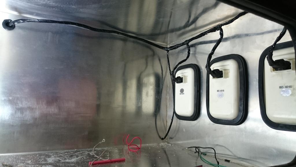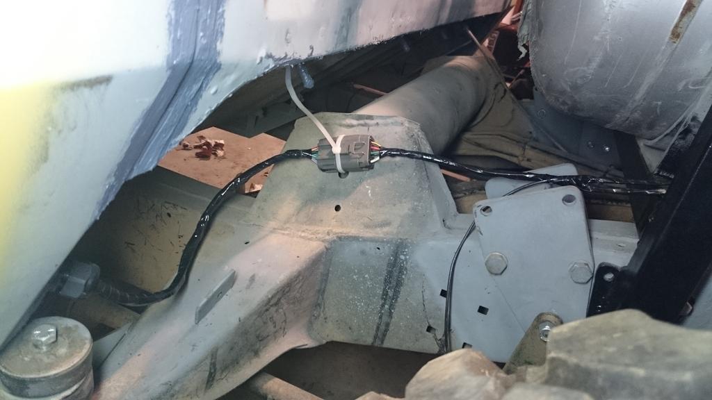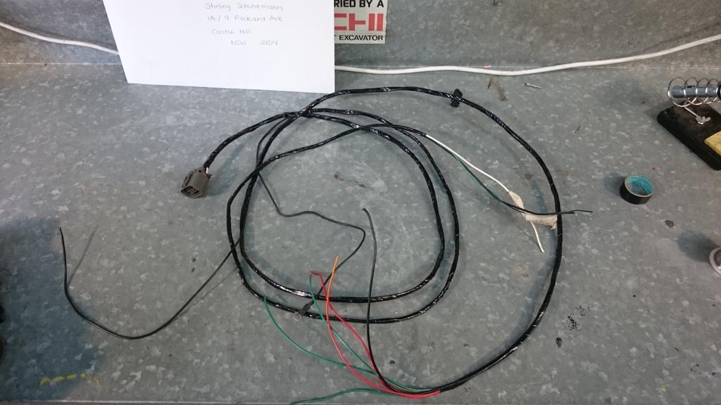 The wiring of the rear tail lights was completed on both sides. Below is a photo of the LH loom which includes the lines for the LPG tank solenoids and fuel level sender.