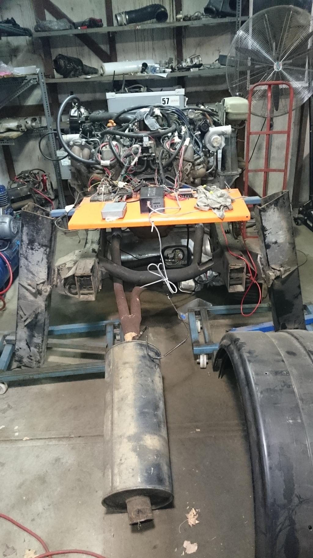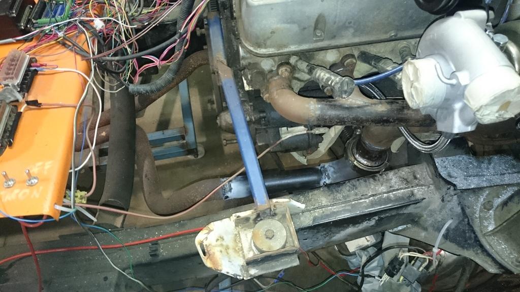 The temporary exhaust system was welded onto the test engine. While it would have been nice to hear it without the silencer, I really need the wide band sensor in the exhaust system when I start the engine. As for the welding... I used the opportunity to do some more stick welding, oh man I have a long way to go with my stick welding skills.