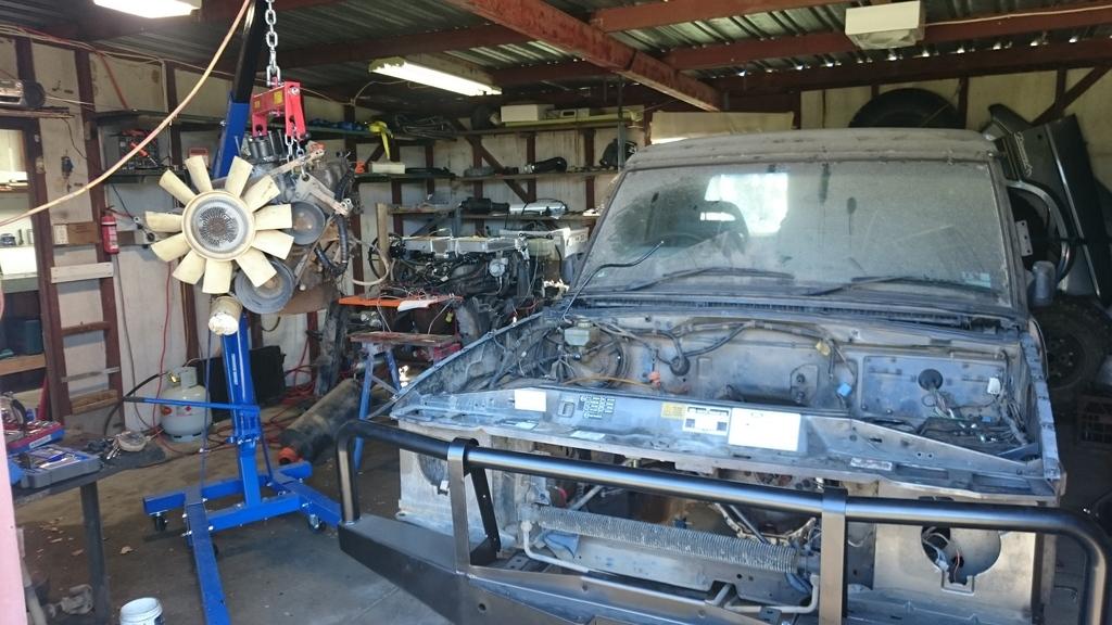 The engine was removed. As you can see no love was given to the engine sitting in the engine bay, I was stepping all over it while undoing bolts.