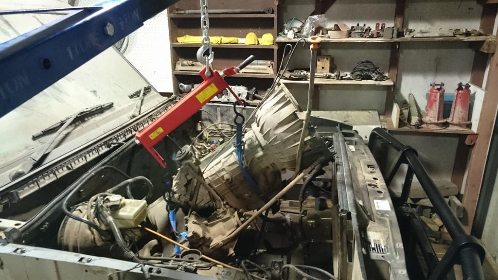 Then we moved on to getting the gearbox out, which proved to be a little trickier since the car was sitting so low (no springs). But I managed to get out out via the engine bay.