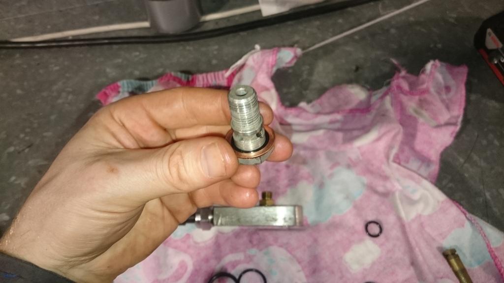 I think I have solved the oil leak problem. The culprit was a dodgy copper washer that I used. While I had everything apart, I decided to instead use a combination of a larger copper washer with an O-ring behind it.