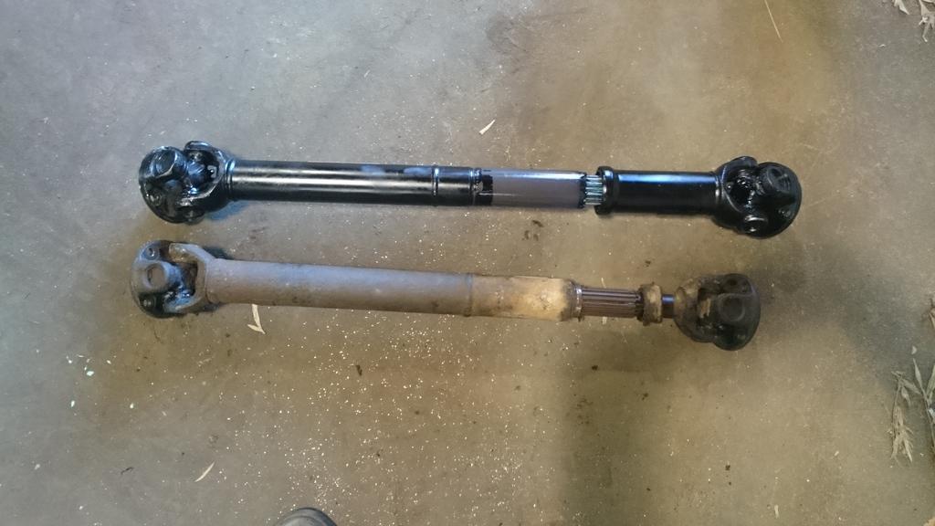 Finally, after putting all the suspension back together, I could move on with putting the new front drive shaft which had the wide angle universal joints. You will see there is a fair difference between the original and the new.