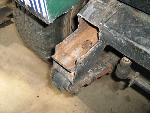 Had to repair the rusted chassis ends on my old girl and thought I'd better share. I've been putting it off since I've owned her, reason being the bolts were welded to the bumper and the nuts rounded off, so I had to cut it off. This is what is what I've started with, rust removed back to good metal.