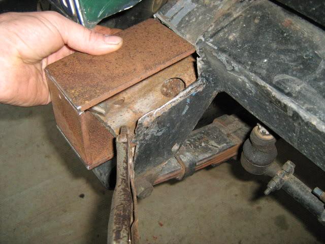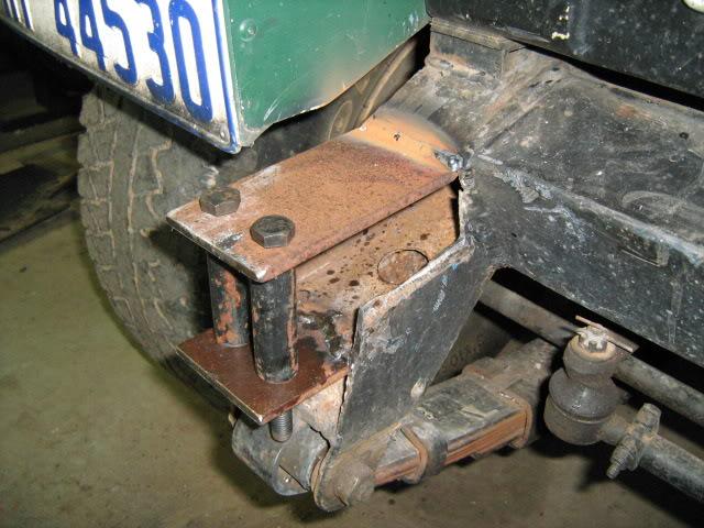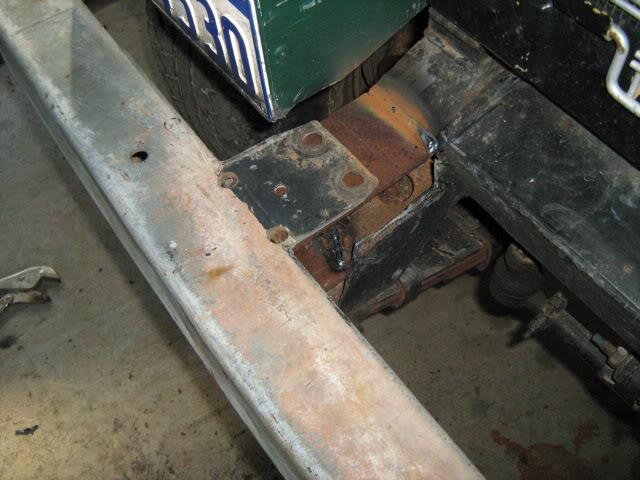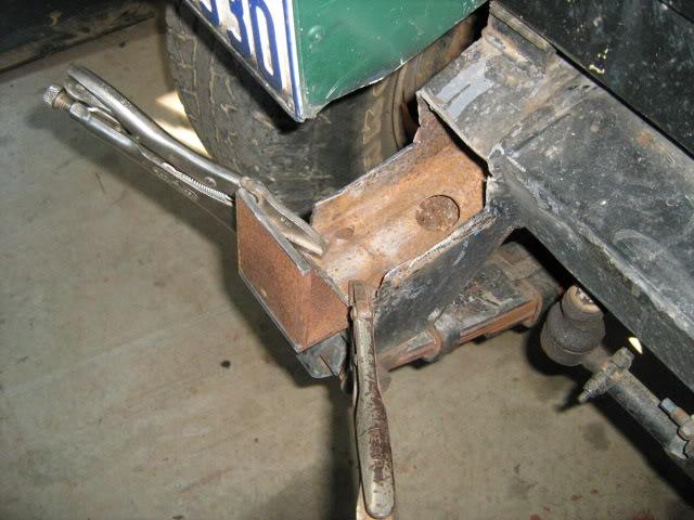 Drill your bolt holes to size. Then cut 4 lengths of pipe that fit inbetween the top and bottom bolt holes. Make sure your bolts fit thru the pipe. This will stop the bolts crushing the chassis when tightening. Put the end piece in possition and weld (tac) pipes in place;