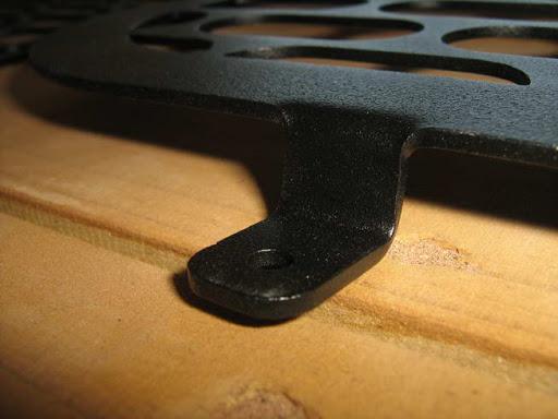 I posted some photos in a previous post of the cut out guards, naked and in all their glory, and since then they have taken a trip to the powercoaters to be blasted, powder primed and powdercoated in satin black. Some phone calls led me to Brian of Adelaide Powder Coaters, and at risk of sounding like I'm pimping his business, he couldn't have been mroe helpful, and I'll certainly be using his services again.