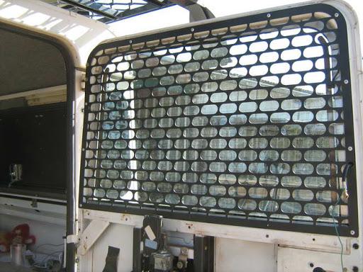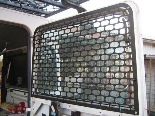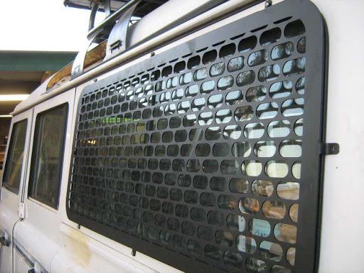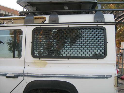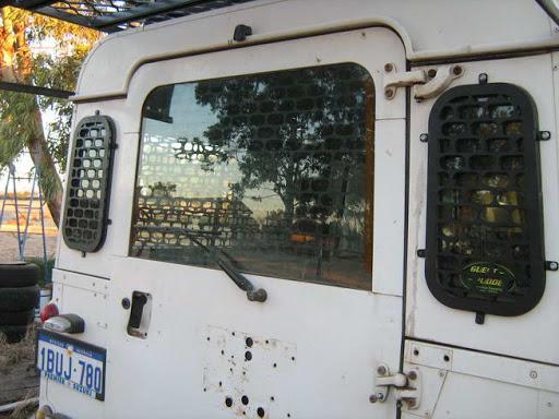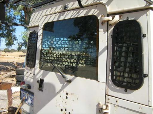 The back windows, temporarily mounted with tec-screws to make sure it all lines up (this was the first set of guards I made)