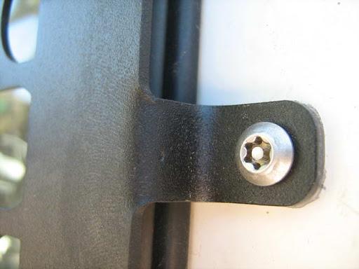 The guards are designed to be rivetted on, but I used secuirty bolts toprovide me with the option of removing them. I used nnyloc nuts on the inside, because even if someone does come along with the gorrect bit (unlikely), once the nyloc nut loses grip on the body, the bolt will just spin without loosening.