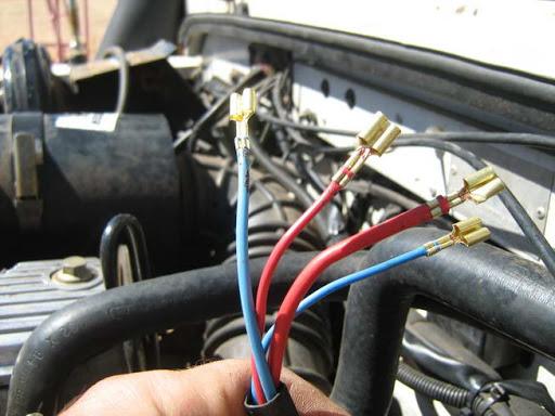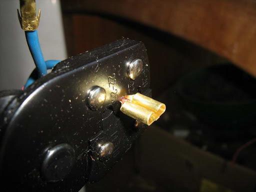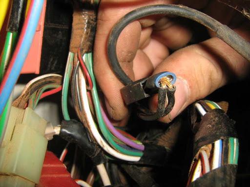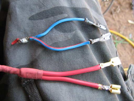 Comparison between the old wiring and the heavier, upgraded wiring. The differences are apparent.