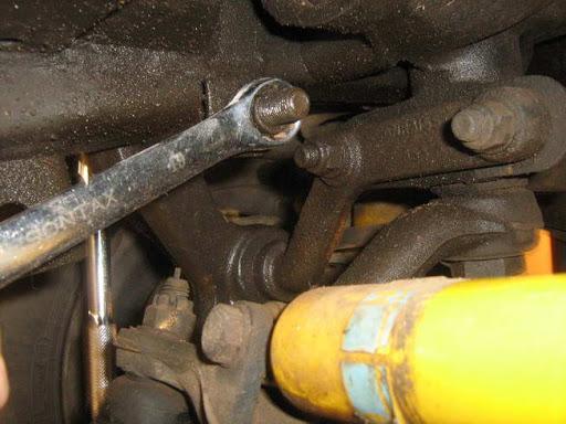 First, unbolt the panhard rod mounting arm, and tap out the bolt.