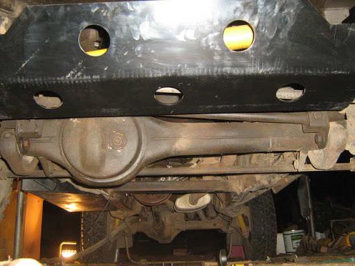 With the steering guard in place, pass the bolt back through the guard, the panhard rod mounting arm and the chassis rail, and bolt it back up.