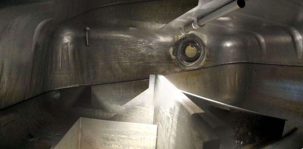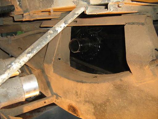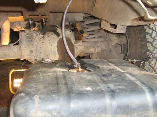 This location is near the original sender so the reporting of fuel level should be consistent; there are no baffles across the tank at this point and there is plenty of room above between the tank and the floor of the rear tub.