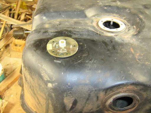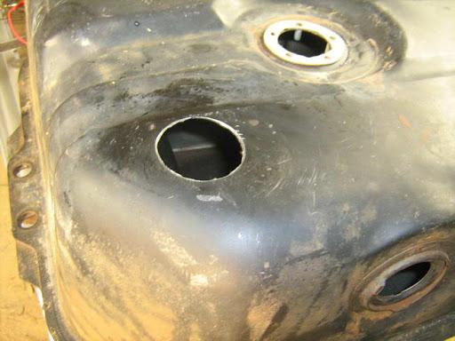 The photo is taken through the hole for the stock sender, and you can see the baffles at the bottom of the tank. The best location (in my opinion) for a replacement sender is here: