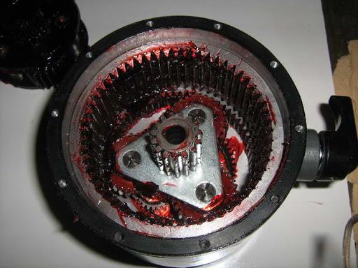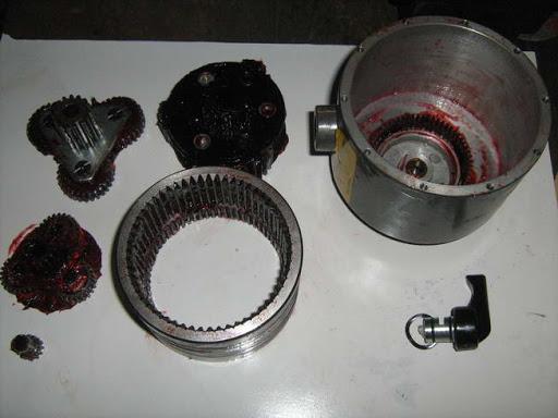 First, let's take a look at the gearbox, and regrease it. Ten bolts around the circumference of the housing....