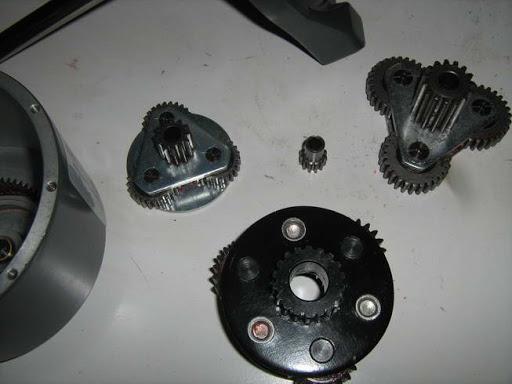 Planetary gearbox completely disassembled. It's worth noting that I haven't removed any grease from the gears at this stage - what you see is what you get. On the plus side though, the lack of grease is the only problem I have found. All gears and mounts seem to be very well manufactured, materials seem to be kosher, construction is solid, so on and so forth. Certainly better than some of the cheap winches I have seen the insides of in the past.