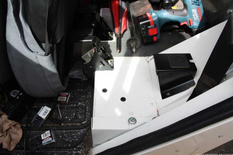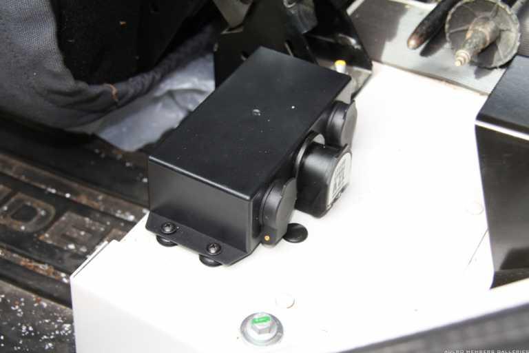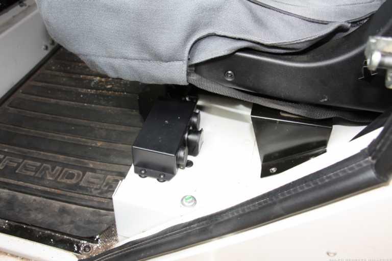 The box was positioned so that the outlets were placed facing to the rear of the Fender as they are less prone to being knocked and as far forward as possible so that inserting the plugs is easy.