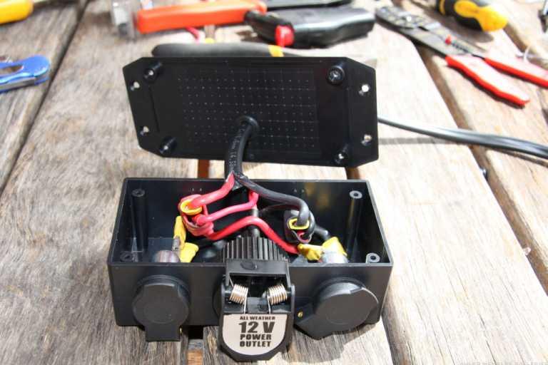 The jiffy box with the sockets and wiring: