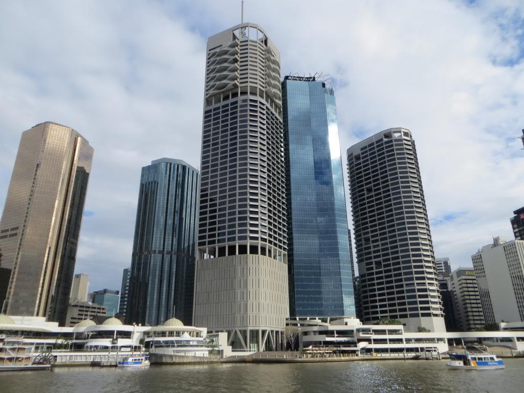 After taking a short stroll through Southbank we ended up at the jetty right near the "Brisbane Wheel" and joined a cruise boat for a very pleasant cruise down the Brisbane River. Most interesting way to fill in the morning and offered an entirely different view of the place to that to which I am "land-lubberly" accustomed. Enjoyed a great lunch and, in the morning at least, great weather, but just as we were about to come about and return to the wharf, the rain began to drizzled down. Not enough to dampen the day however.