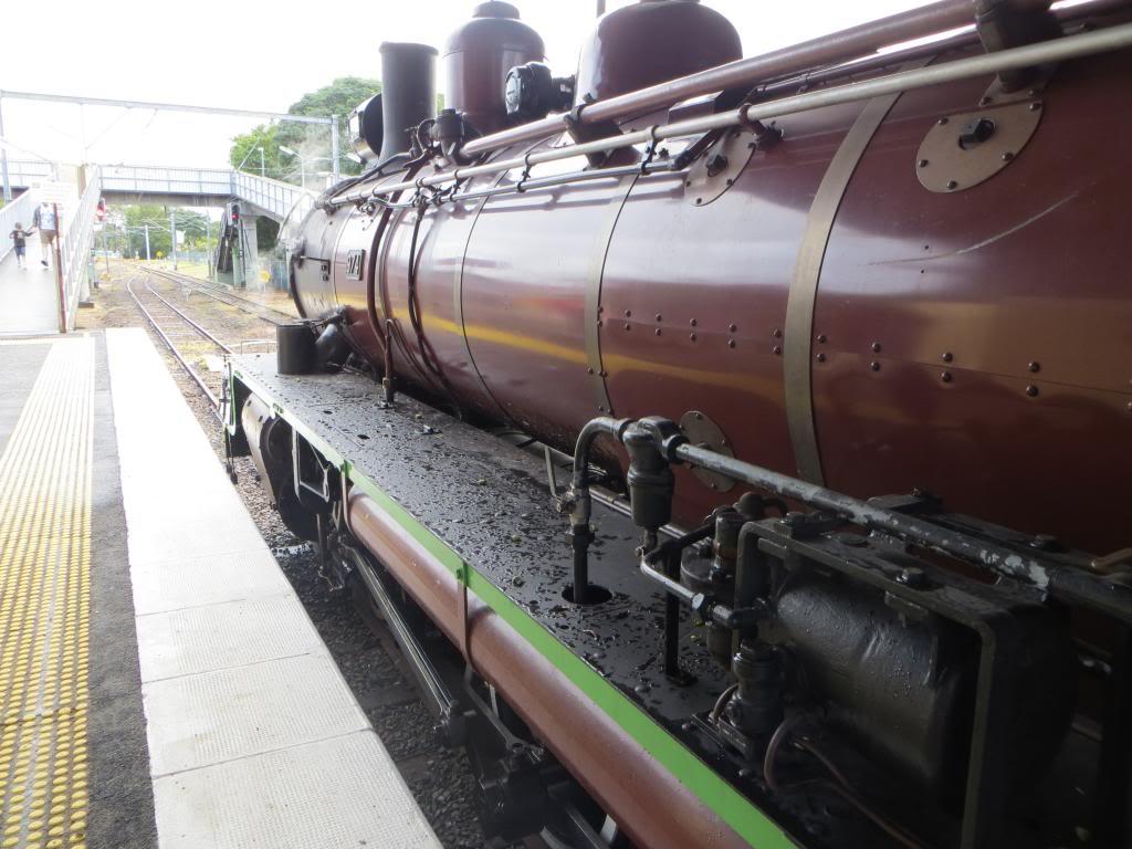 At Doomben station we were met by a C17 class loco, built locally by Walker Bros in Maryborough in 1951, hauling a water tanker and four historic carriages. All apparently are owned still and run by Q Rail.