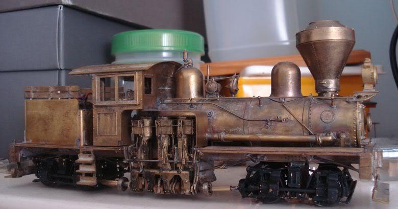 This unpainted brass locomotive is older than me, it's a Japanese model of a 3'6" gauge locomotive, roughly HO scale (actually HOj or 1:80). Very similar engines operated in South Australia. It cost me a few hours fixing a customer's crappy tracklaying efforts.