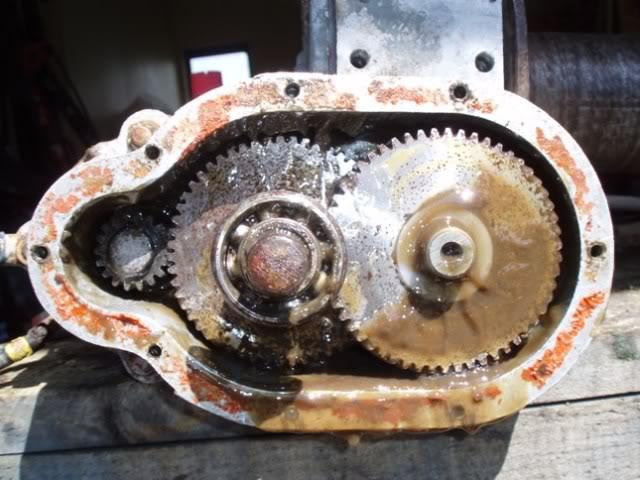 These pictures are when I first got it home. I have since cleaned it up considerably and re-oiled it. According to Maurice Thomas (through emails to/from him), the original oil spec is ATF in the spur gear side and 90 weight gear oil in the worm drive.