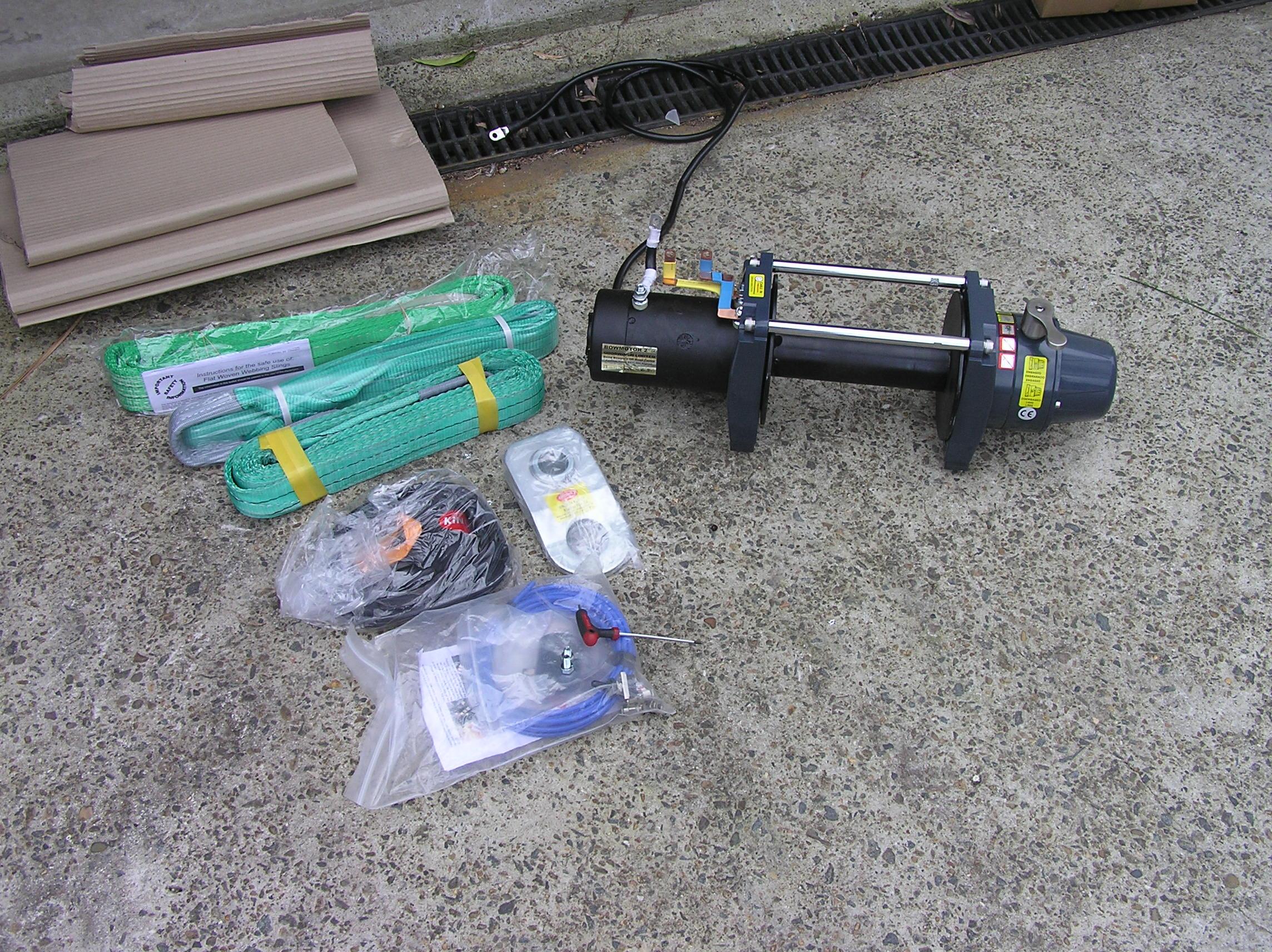 Even though I asked for a bare bones winch, no oem solenoids (upgraded to an albright unit) or cables etc all this was thrown in (cables are upgraded to suit the bowmotor too) as well plus the standard pulley block (a rated and much more compact unit that common) plus a set of 1, 3 & 5m tree/extension straps.