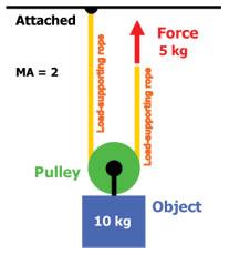 I read an article recently that said that the MA was equal to the number of ropes that are getting shorter. Can anyone show a situation where that description is not correct? If people are prepared to accept that it is always true that the MA is the same as the number of ropes getting shorter, then that might be an easy way to explain why a single snatch block on a tree would give a MA of 2 if the end of the cable is attached to the same vehicle as the winch.